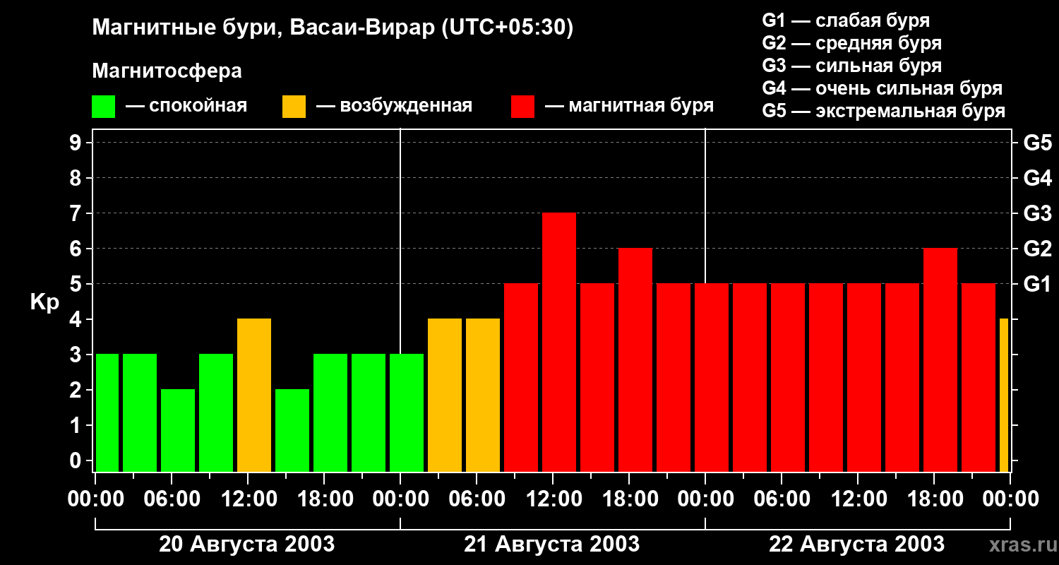 Магнитные бури в Васаи-Вираре — 22 августа 2003 года