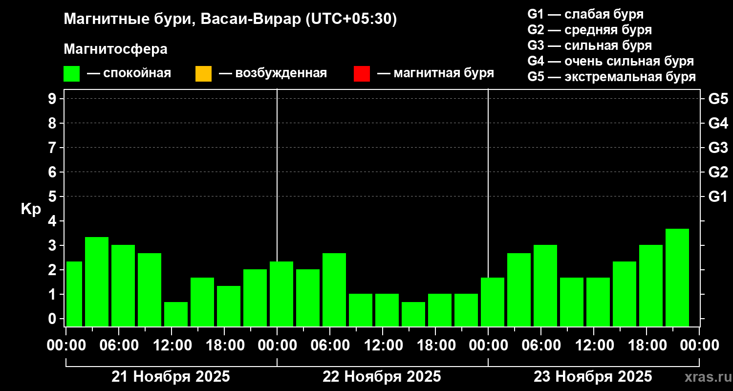 Магнитные бури в Васаи-Вираре — 23 ноября 2025 года