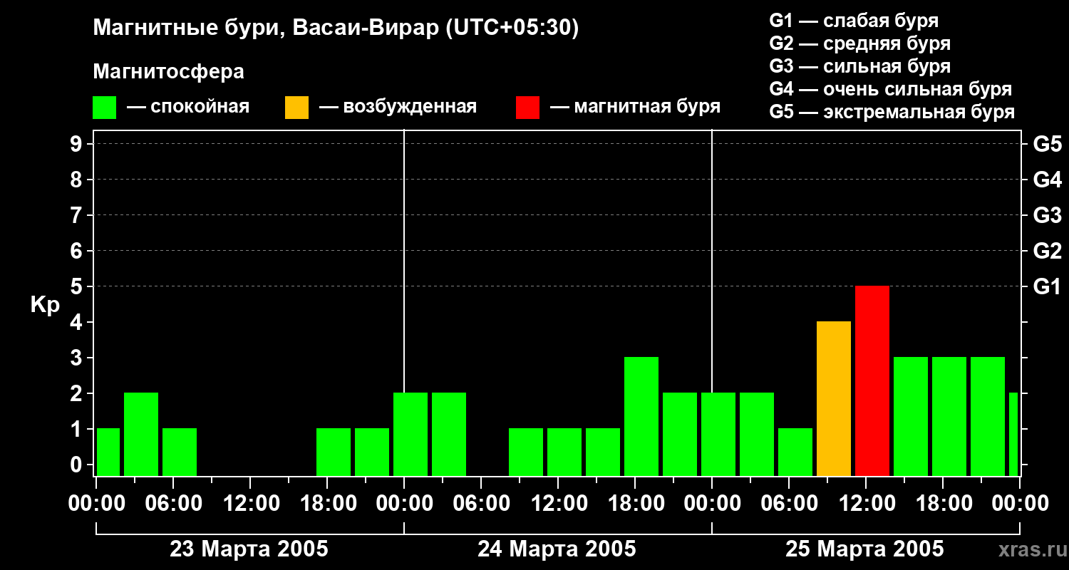 Магнитные бури в Васаи-Вираре — 25 марта 2005 года