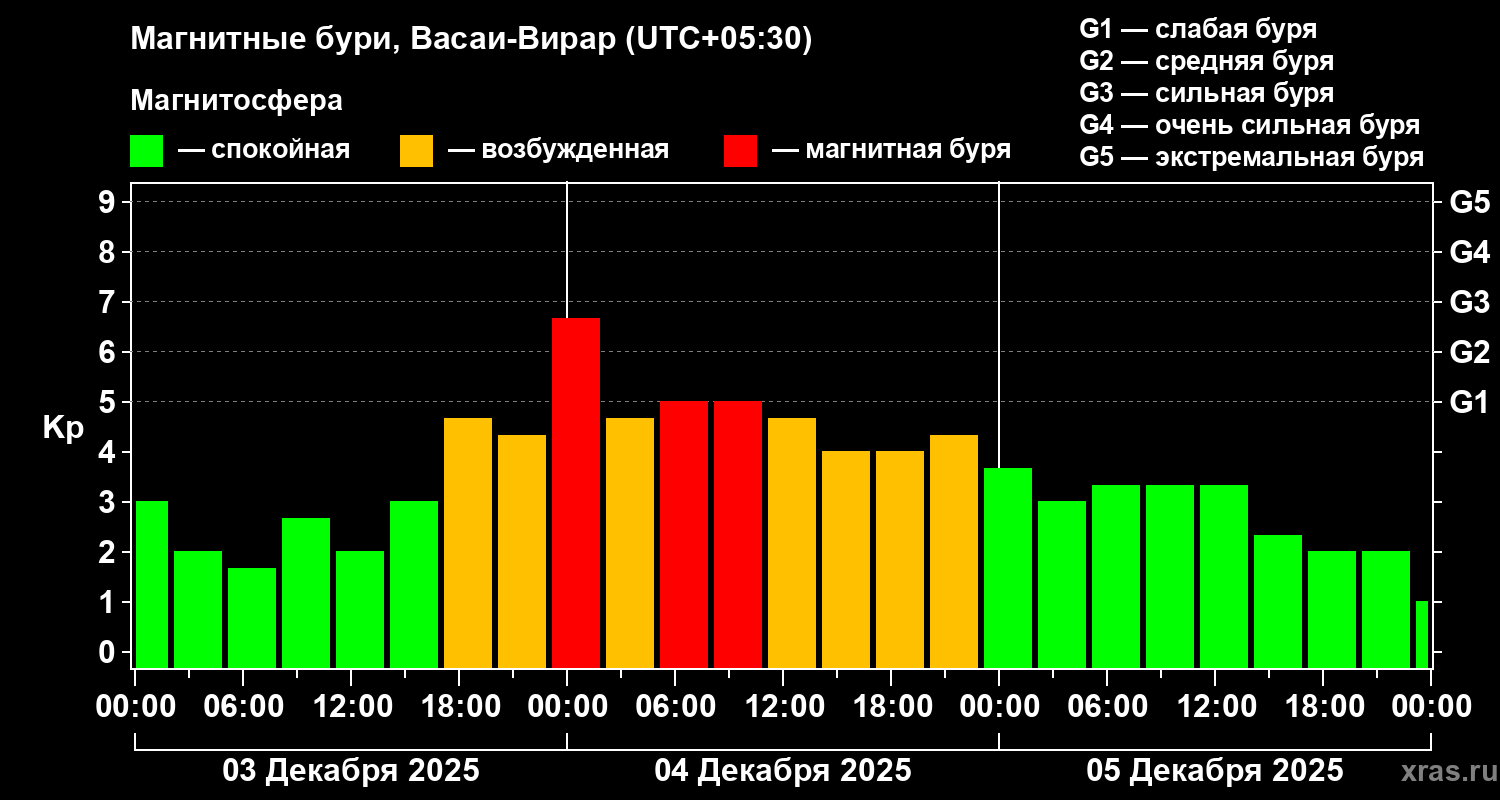 Магнитные бури в Васаи-Вираре 5 декабря 2025 года