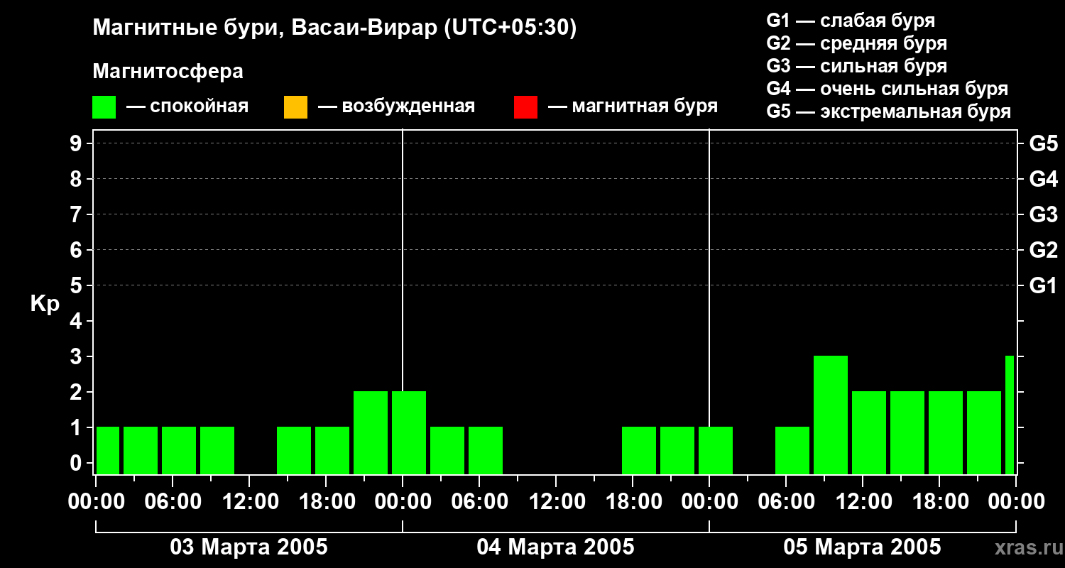 Магнитные бури в Васаи-Вираре — 5 марта 2005 года
