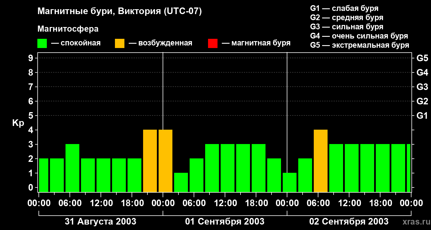 Магнитные бури в Виктории — 2 сентября 2003 года