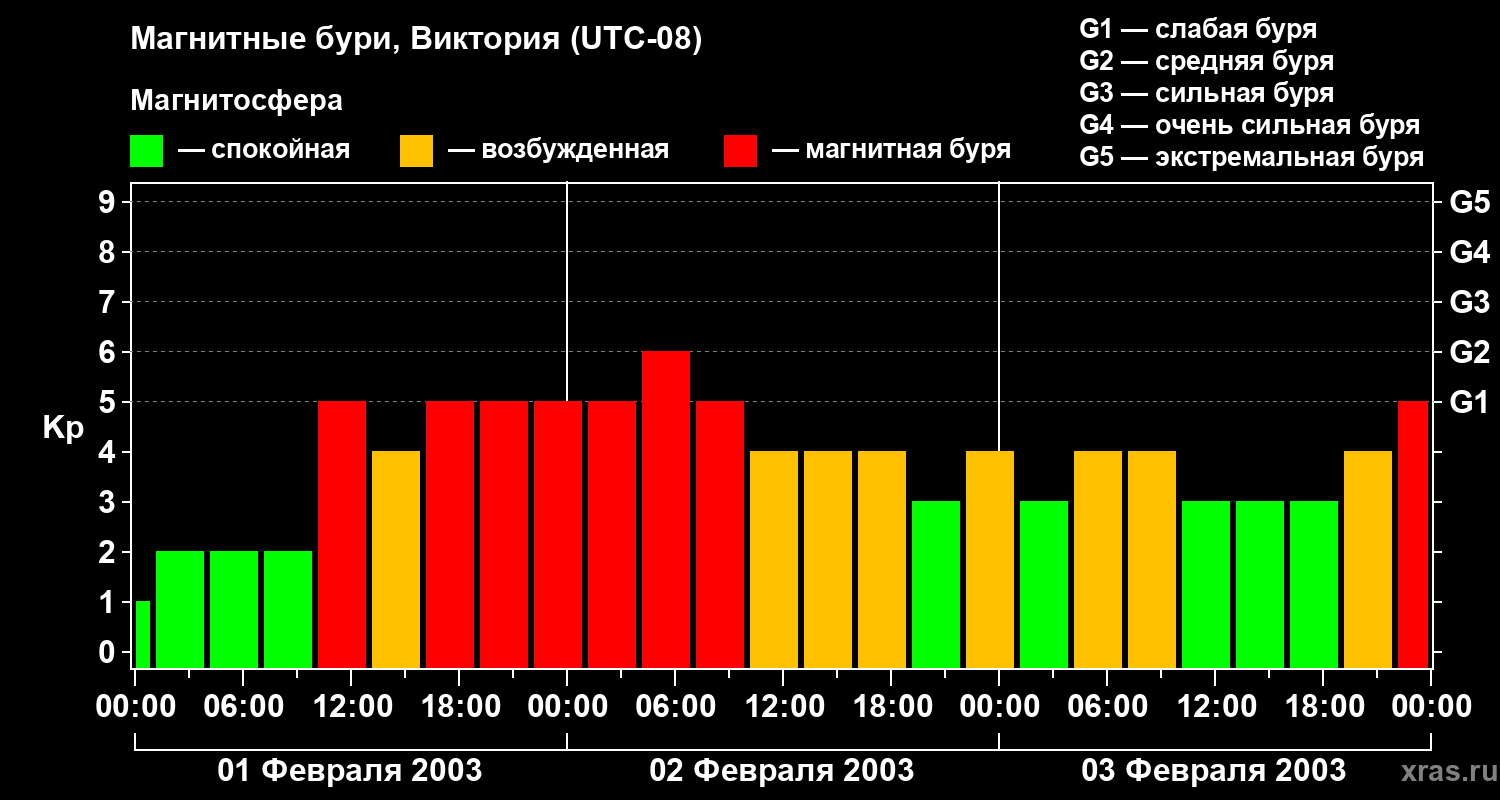Магнитные бури в Виктории — 3 февраля 2003 года