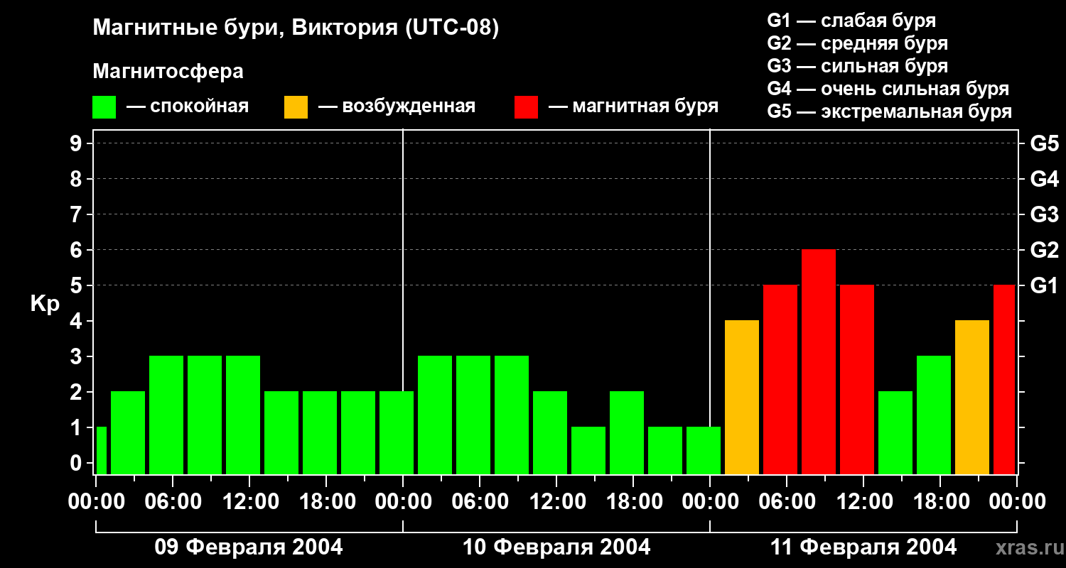 Магнитные бури в Виктории — 11 февраля 2004 года