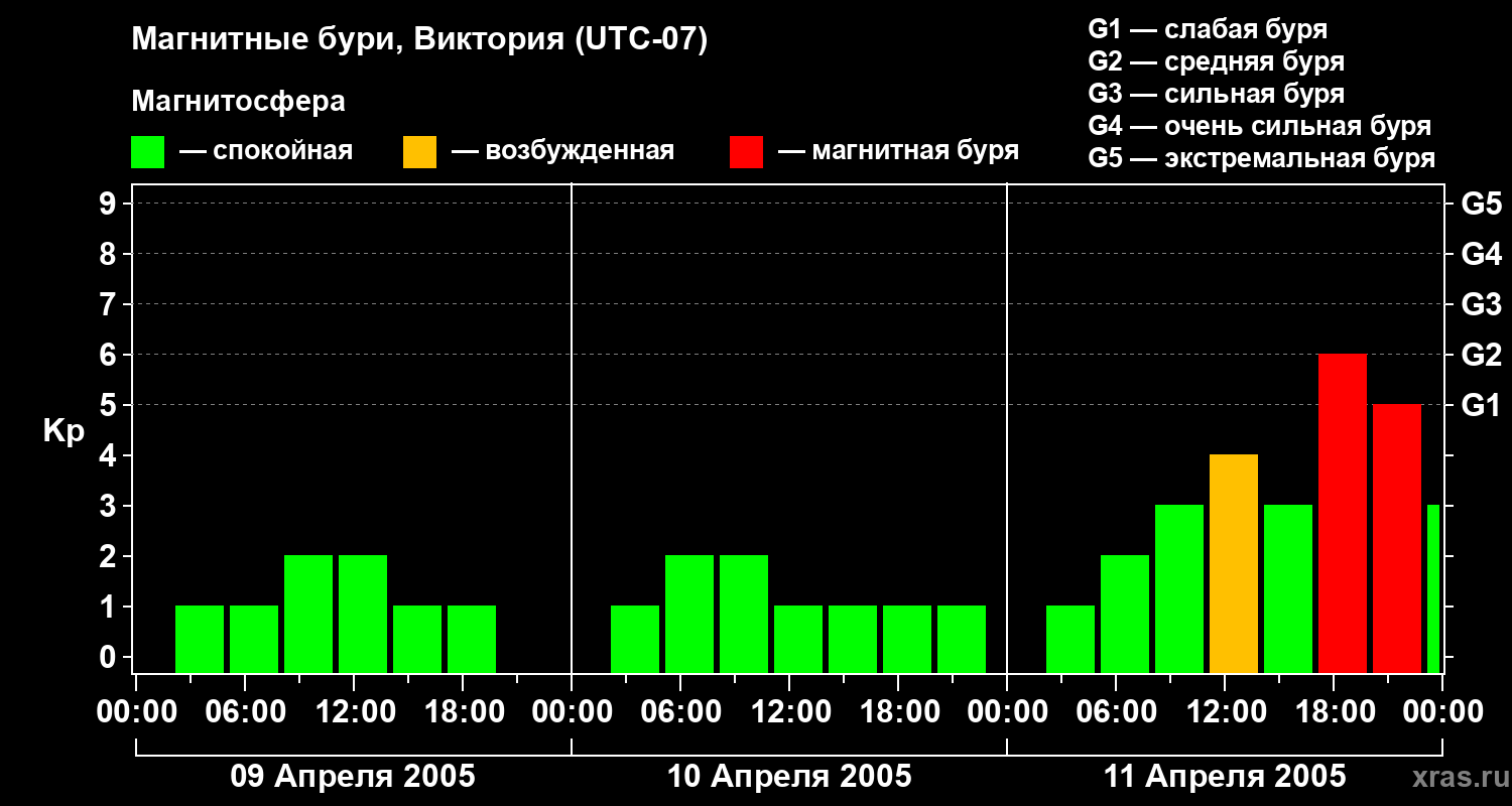 Магнитные бури в Виктории — 11 апреля 2005 года