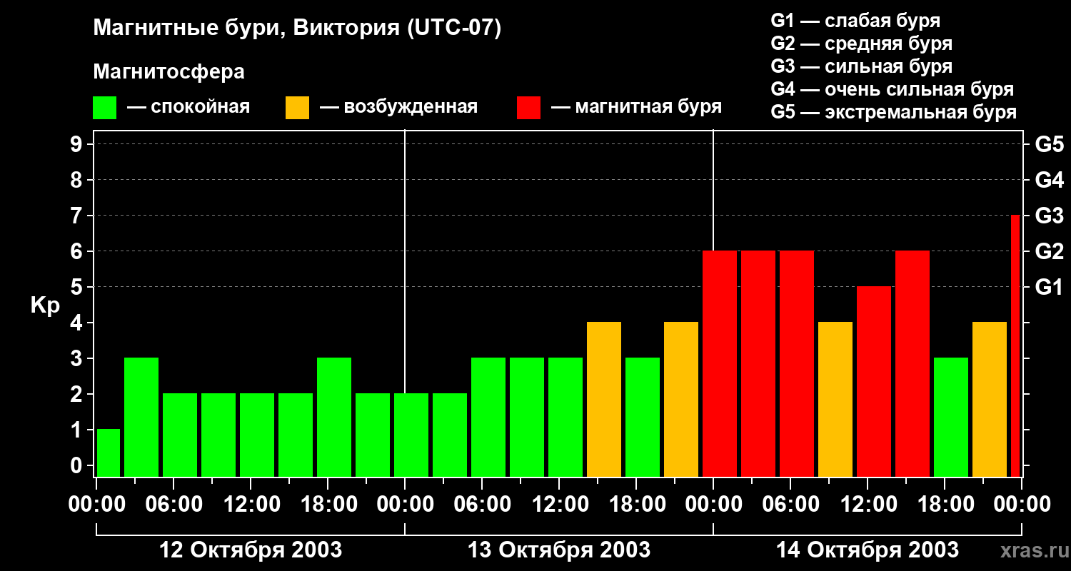 Магнитные бури в Виктории — 14 октября 2003 года