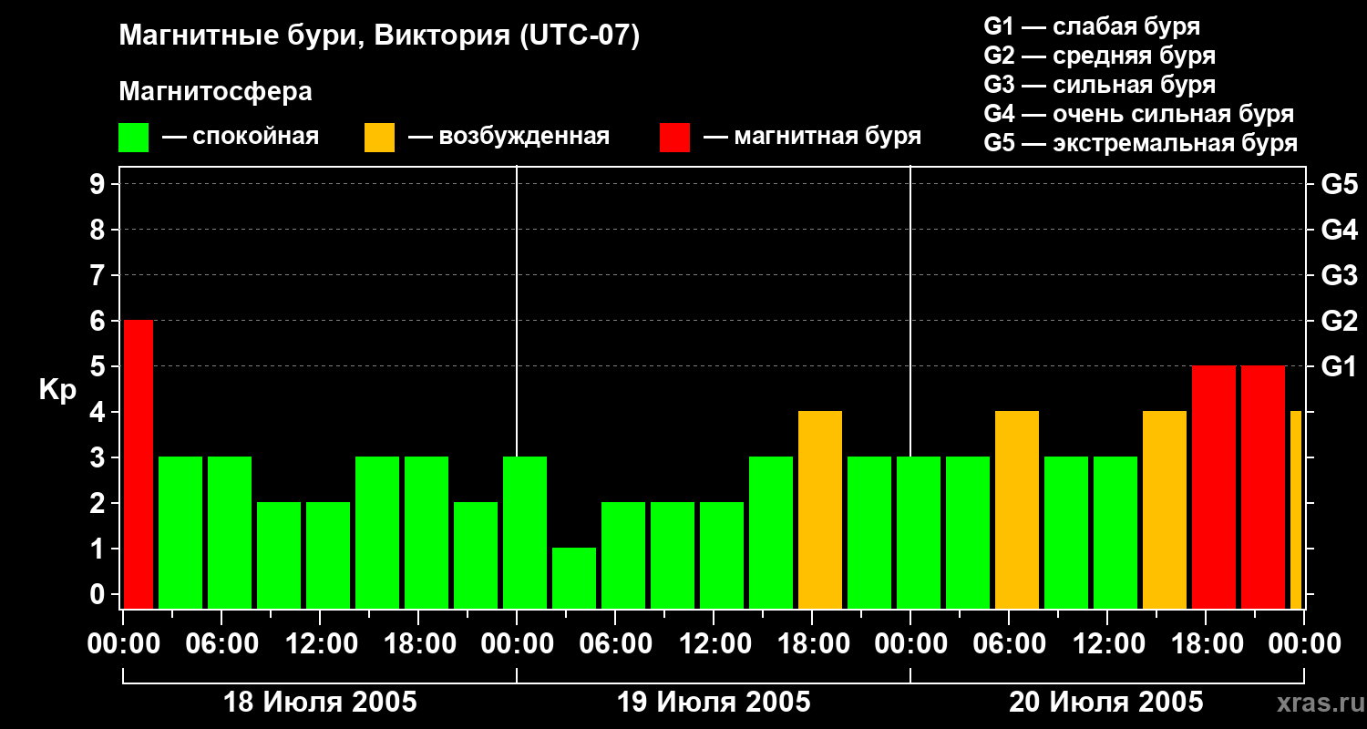 Магнитные бури в Виктории 20 июля 2005 года