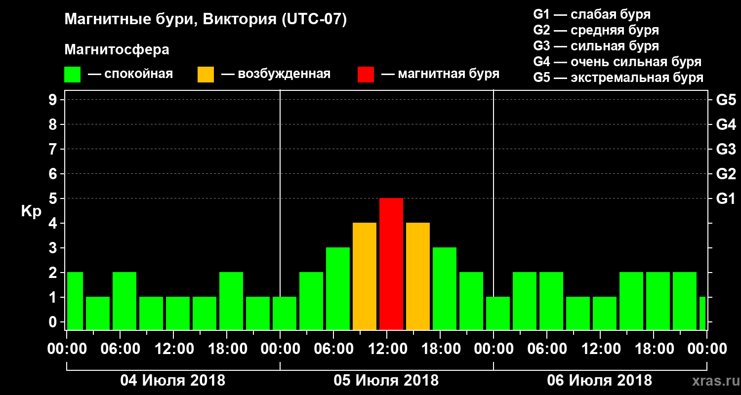 Магнитные бури в Виктории 6 июля 2018 года