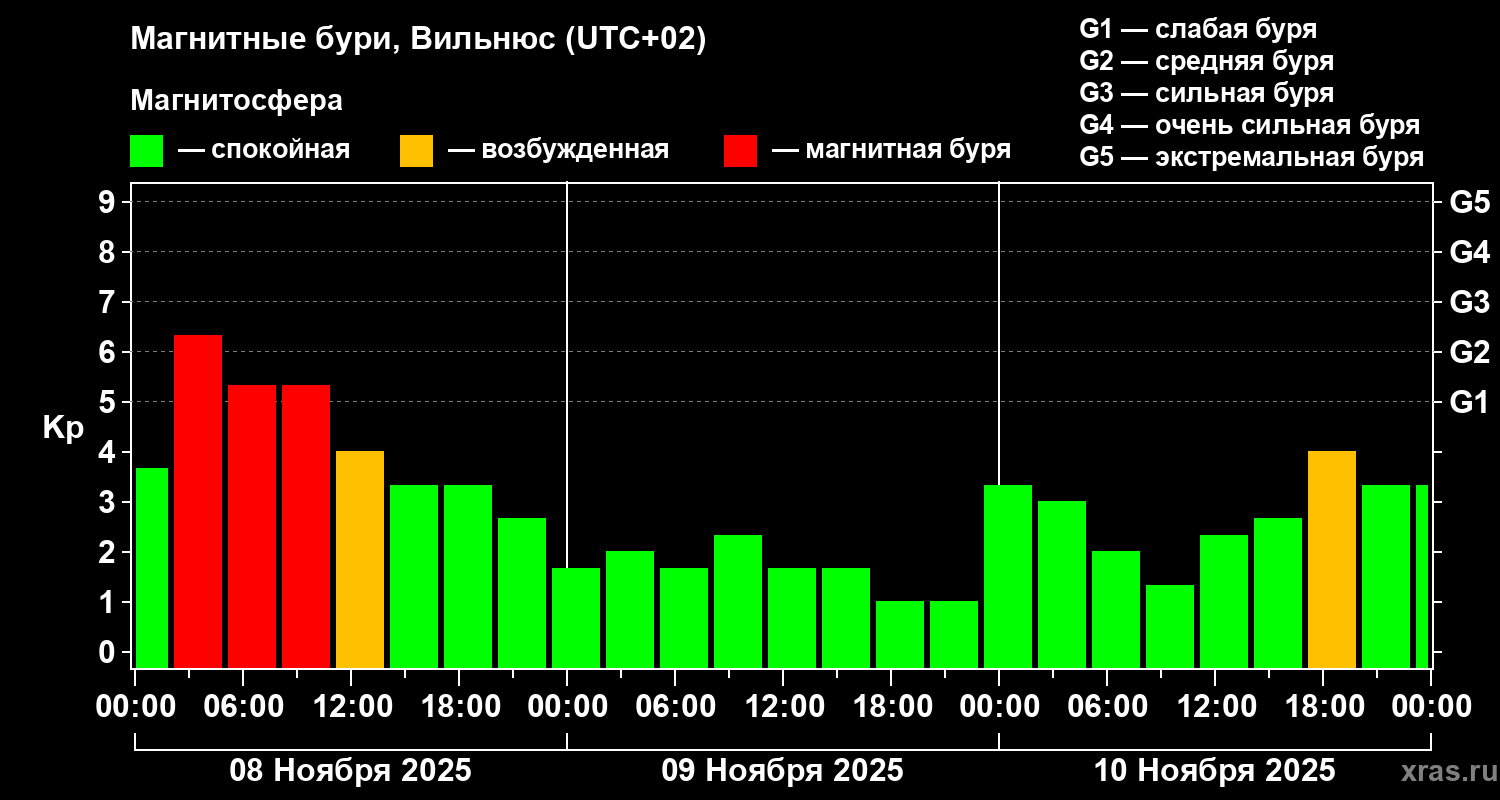 Магнитные бури в Вильнюсе — 10 ноября 2025 года