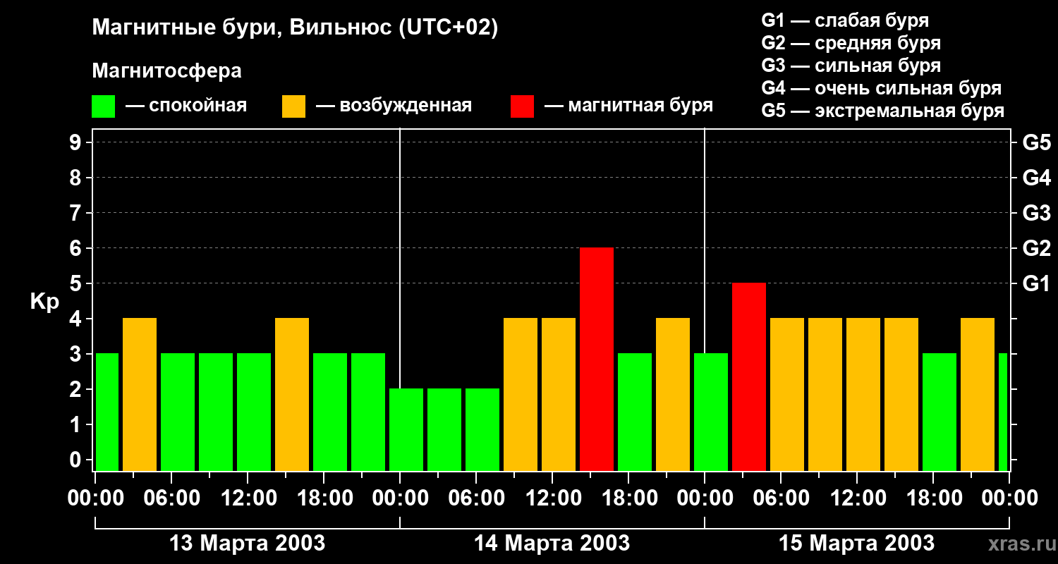 Магнитные бури в Вильнюсе — 15 марта 2003 года