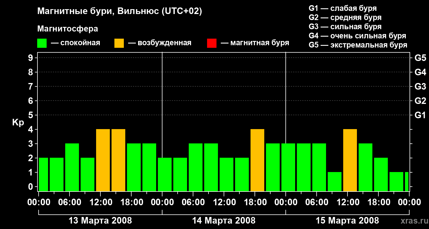 Магнитные бури в Вильнюсе — 15 марта 2008 года