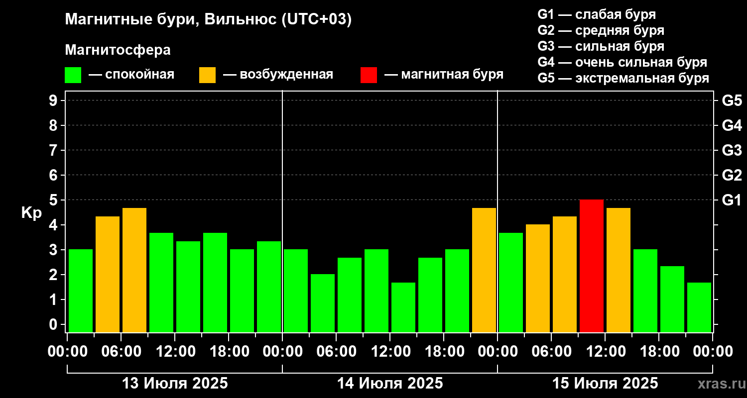 Магнитные бури в Вильнюсе — 15 июля 2025 года