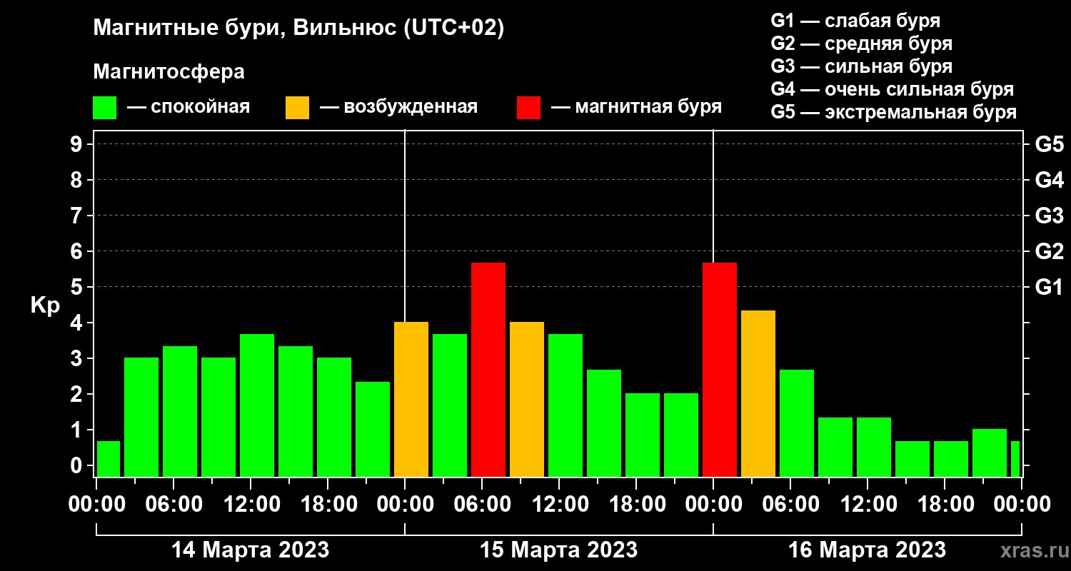 Магнитные бури в Вильнюсе — 16 марта 2023 года