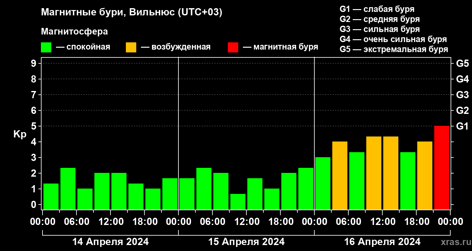 Магнитные бури в Вильнюсе — 16 апреля 2024 года