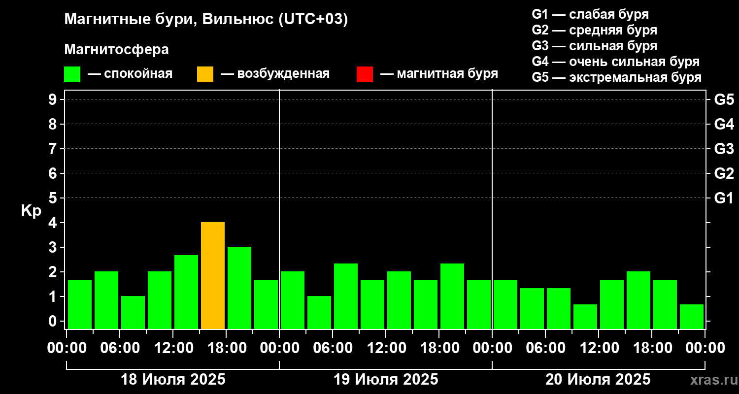 Магнитные бури в Вильнюсе — 20 июля 2025 года