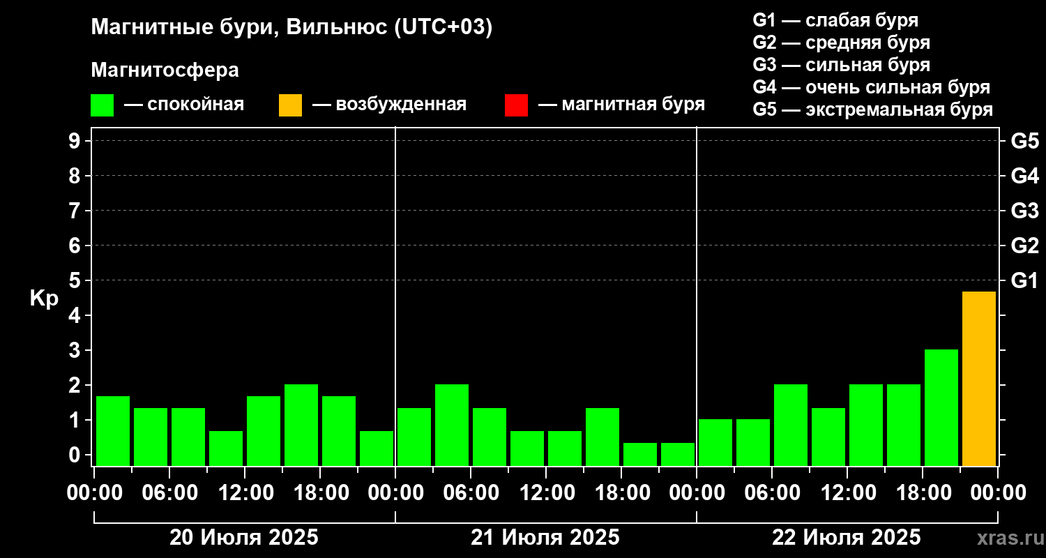 Магнитные бури в Вильнюсе — 22 июля 2025 года