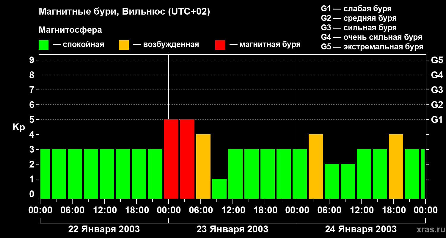 Магнитные бури в Вильнюсе — 24 января 2003 года