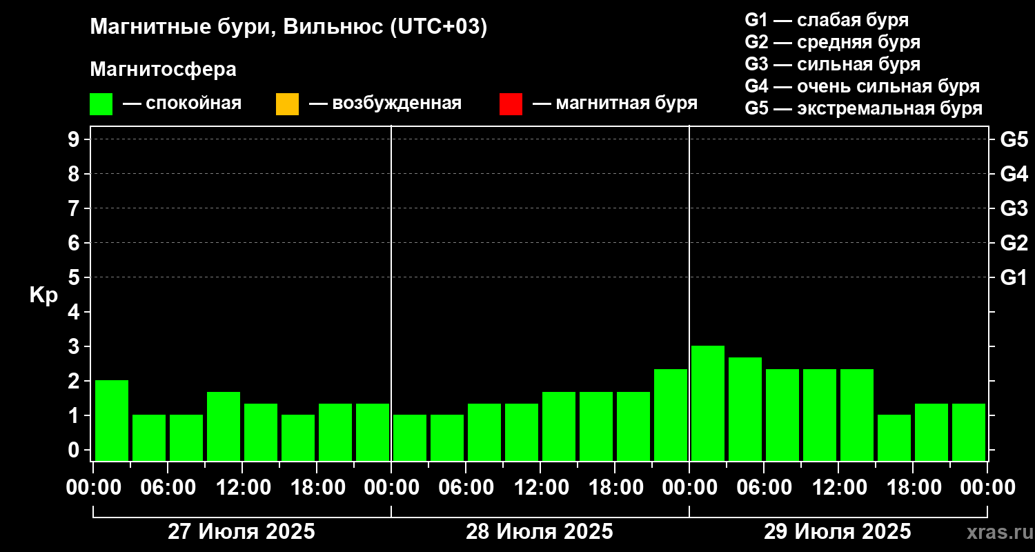 Магнитные бури в Вильнюсе — 29 июля 2025 года
