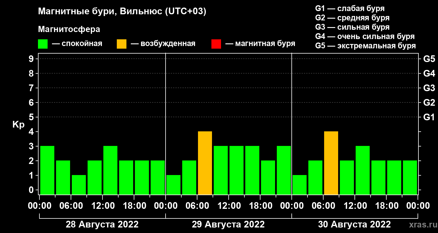 Магнитные бури в Вильнюсе — 30 августа 2022 года