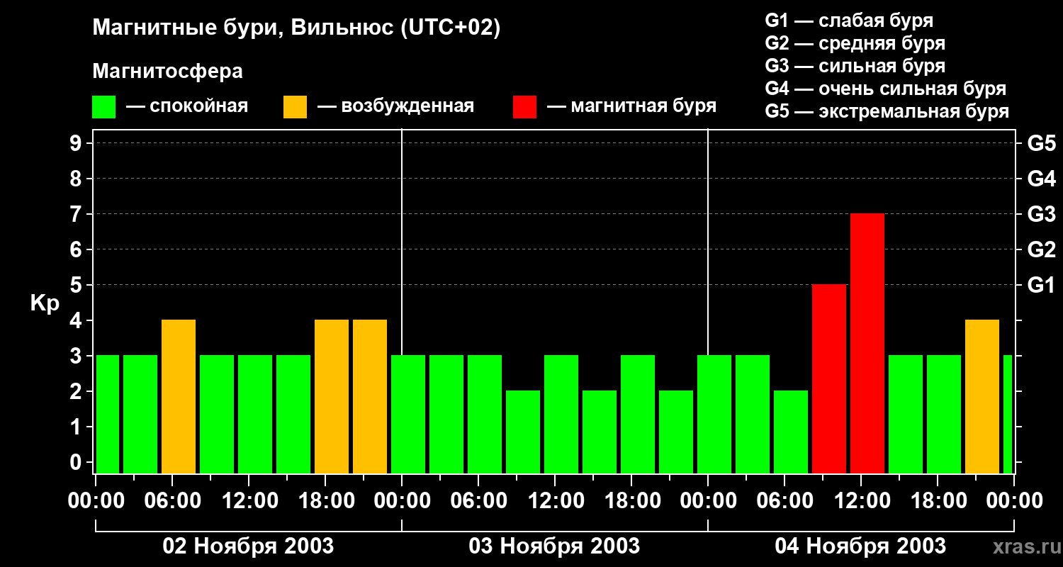 Магнитные бури в Вильнюсе — 4 ноября 2003 года