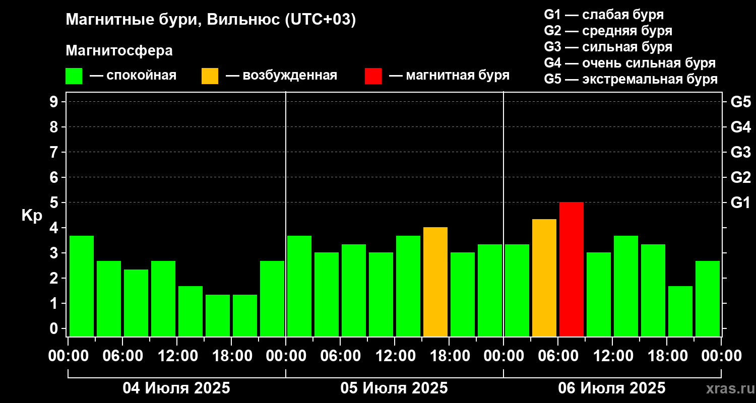 Магнитные бури в Вильнюсе — 6 июля 2025 года