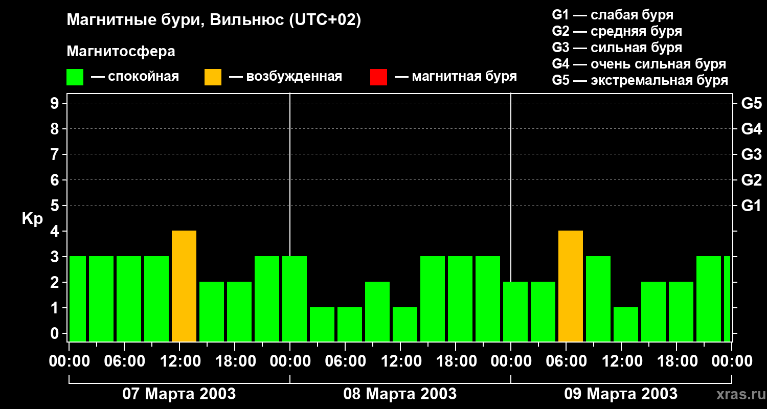 Магнитные бури в Вильнюсе — 9 марта 2003 года