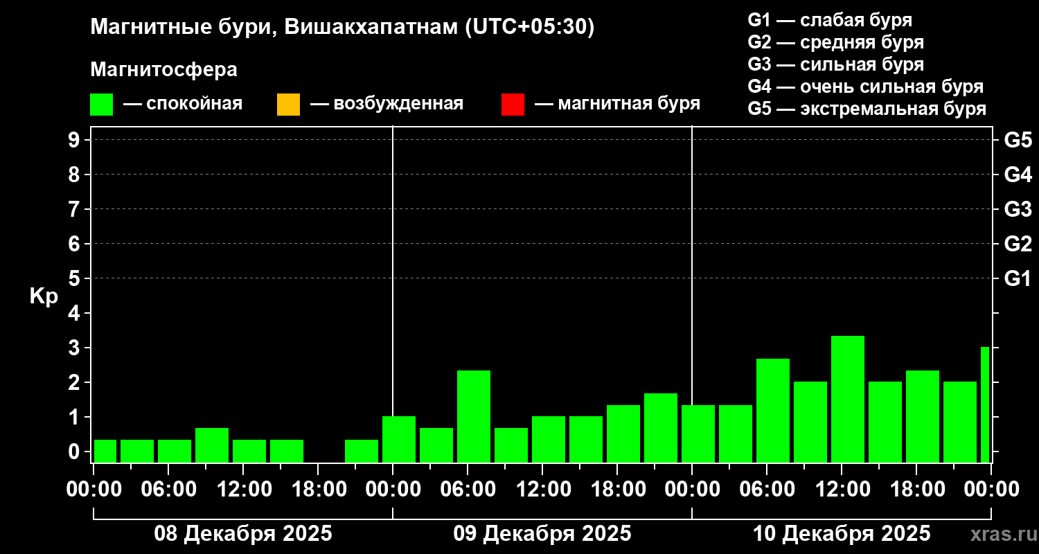 Магнитные бури в Вишакхапатнаме — 10 декабря 2025 года