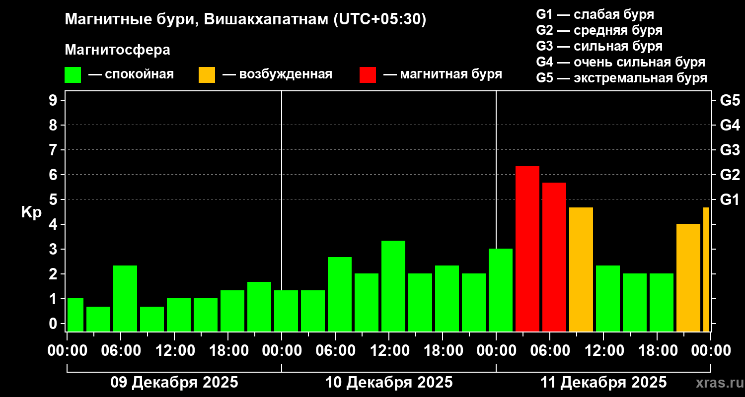 Магнитные бури в Вишакхапатнаме — 11 декабря 2025 года