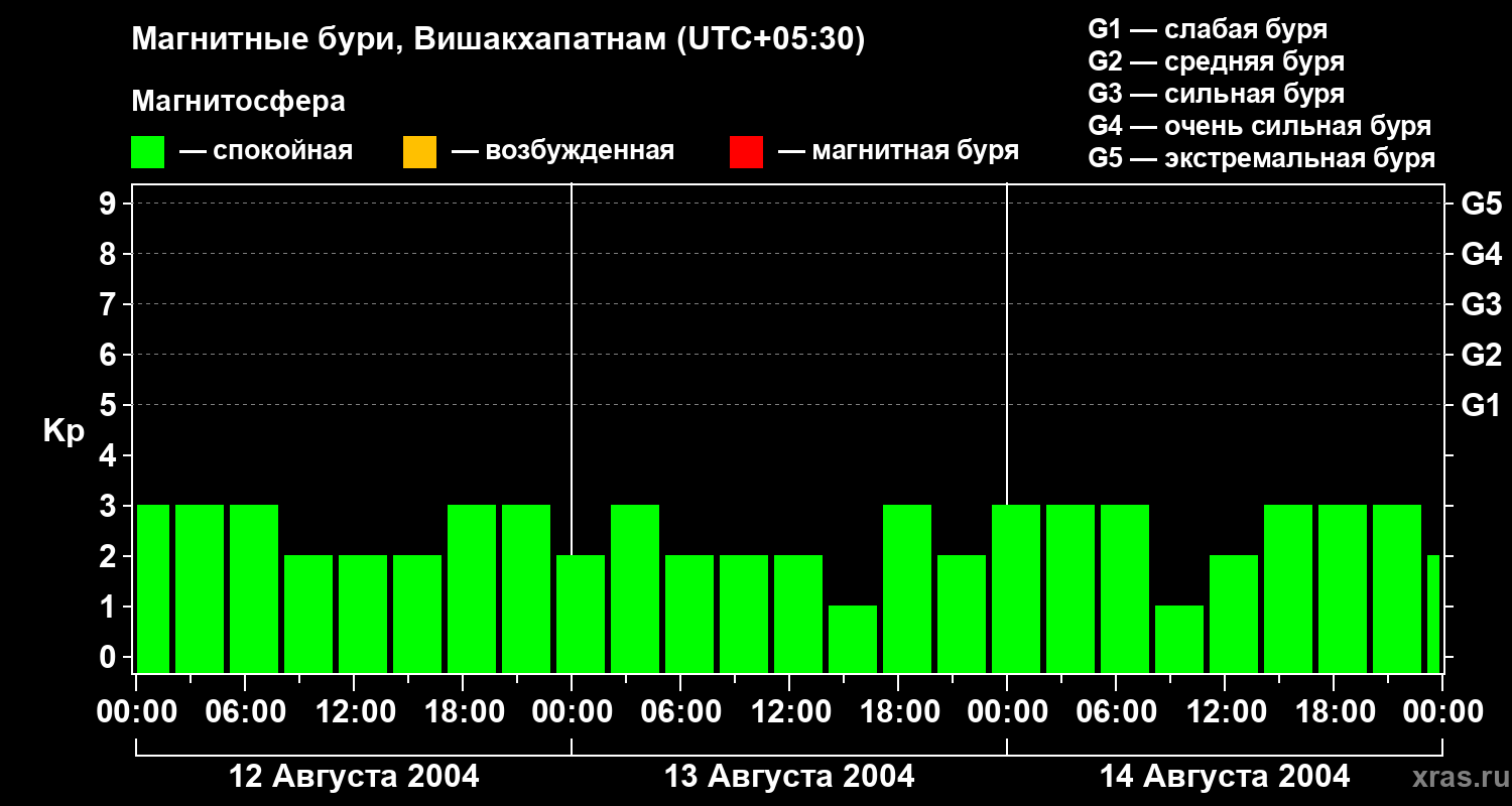 Магнитные бури в Вишакхапатнаме 14 августа 2004 года