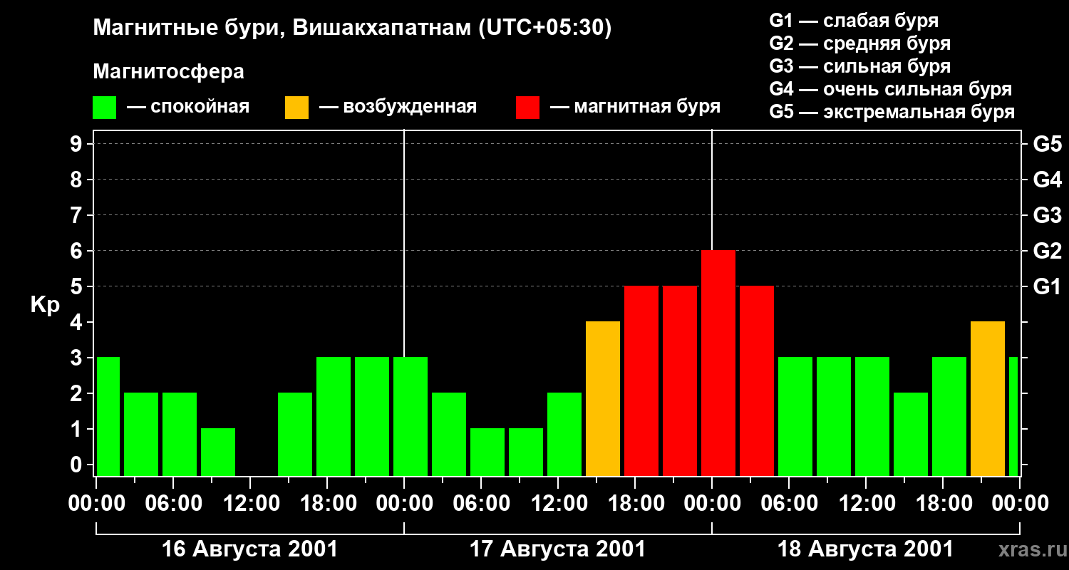 Магнитные бури в Вишакхапатнаме 18 августа 2001 года