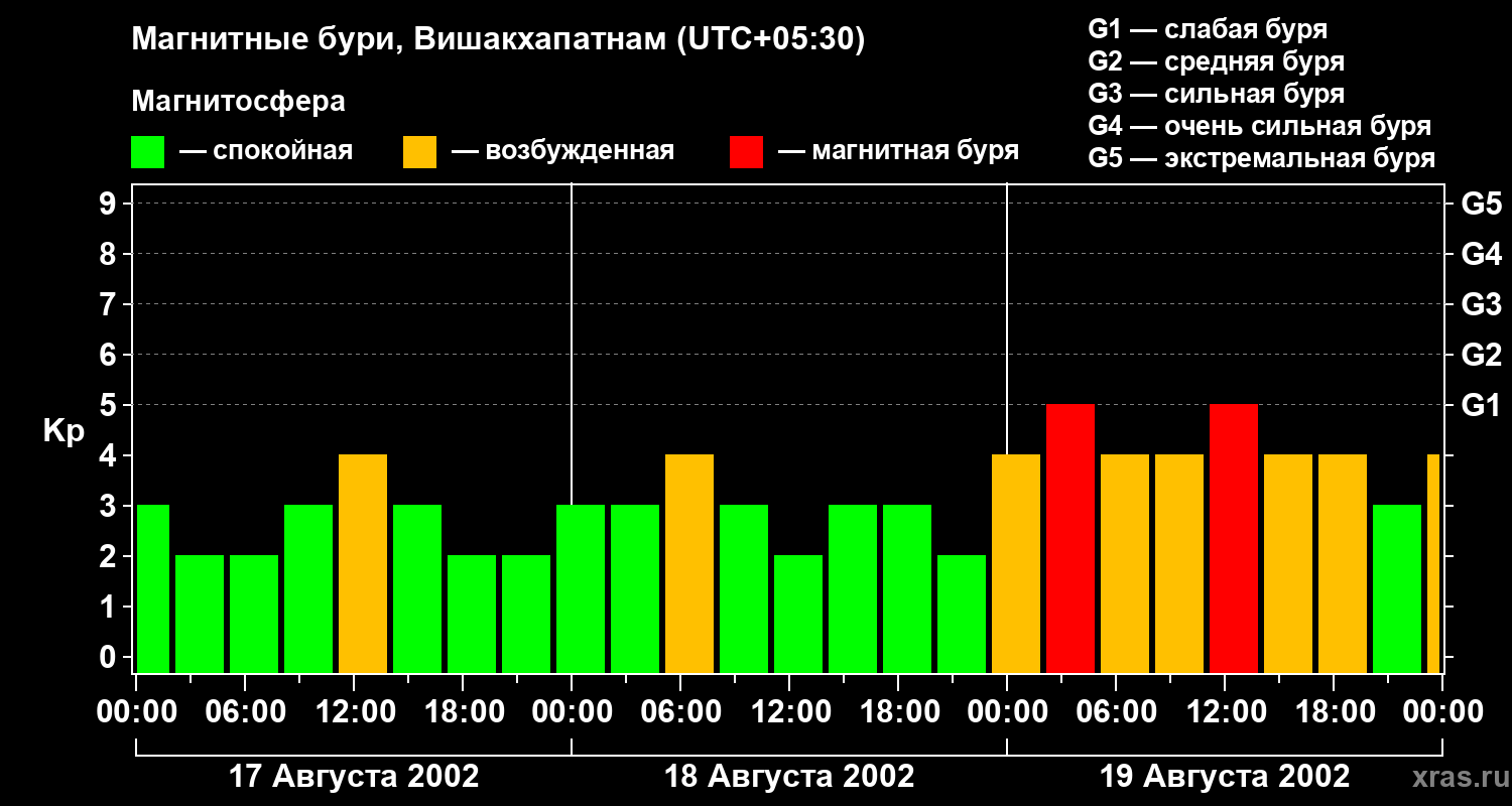 Магнитные бури в Вишакхапатнаме 19 августа 2002 года