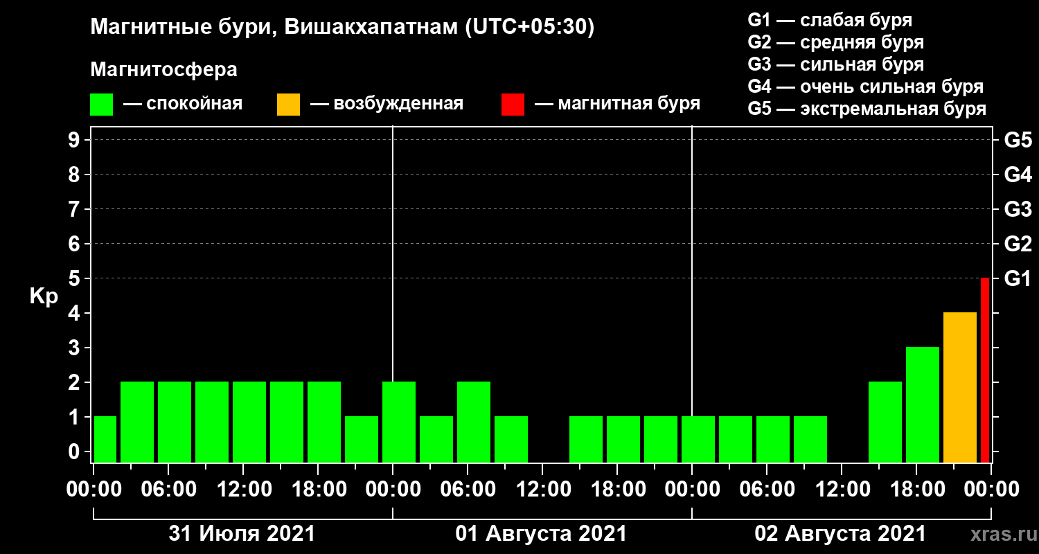 Магнитные бури в Вишакхапатнаме — 2 августа 2021 года