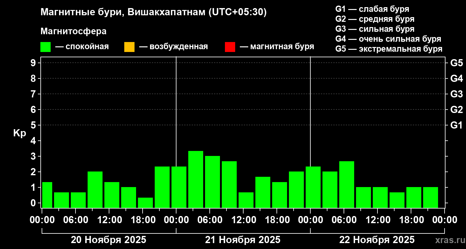 Магнитные бури в Вишакхапатнаме 22 ноября 2025 года