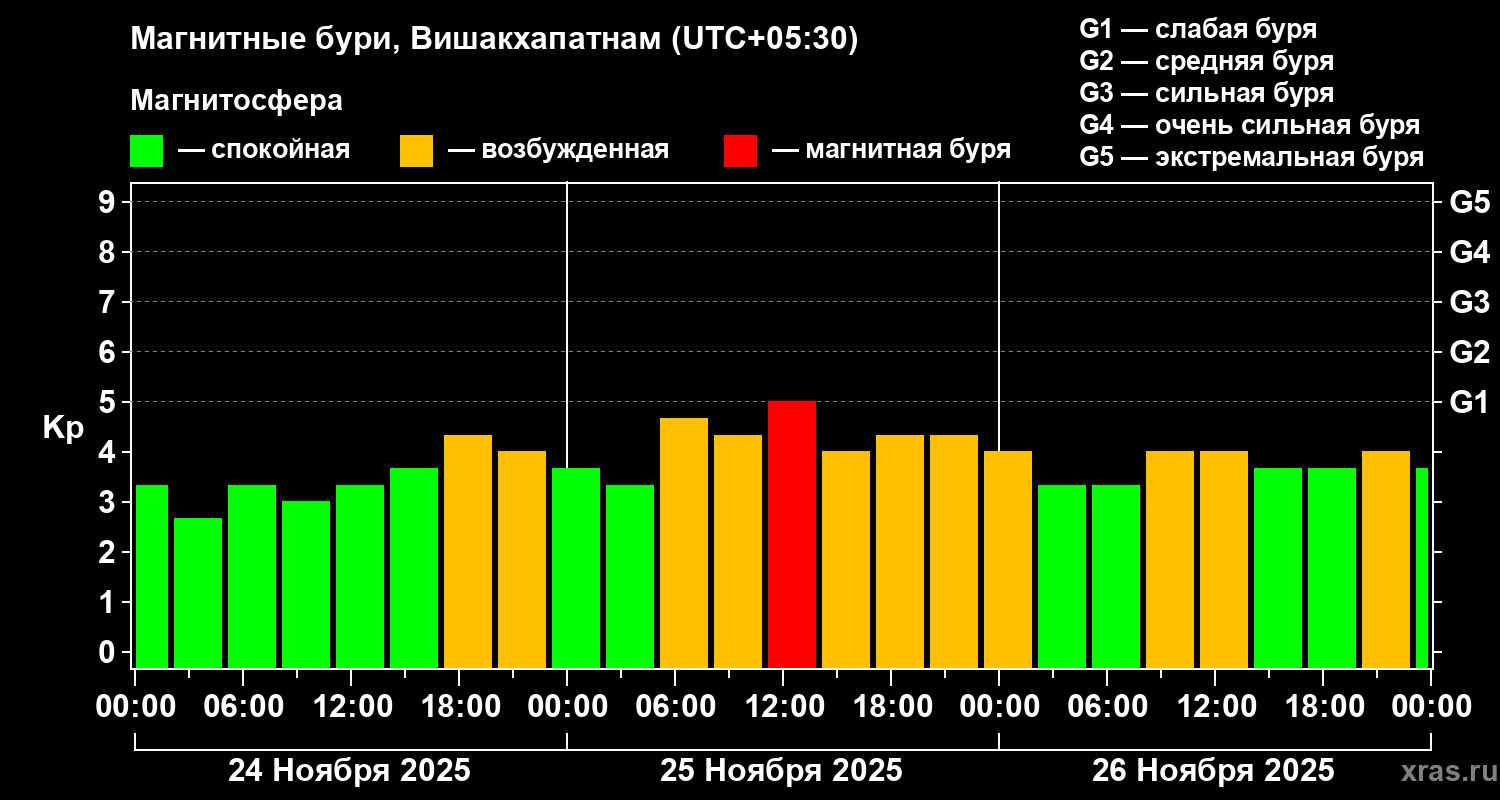 Магнитные бури в Вишакхапатнаме 26 ноября 2025 года