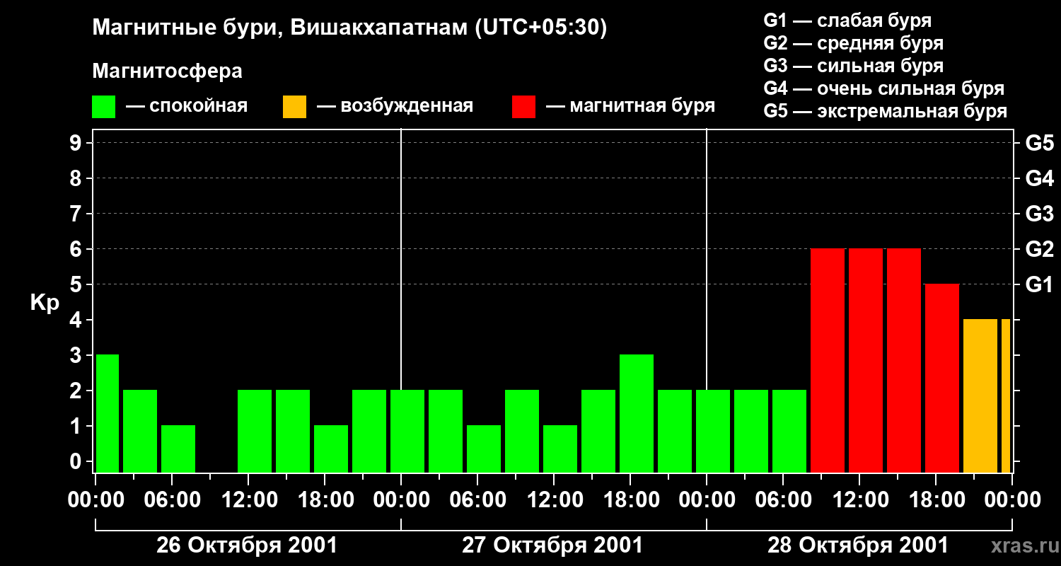 Магнитные бури в Вишакхапатнаме 28 октября 2001 года