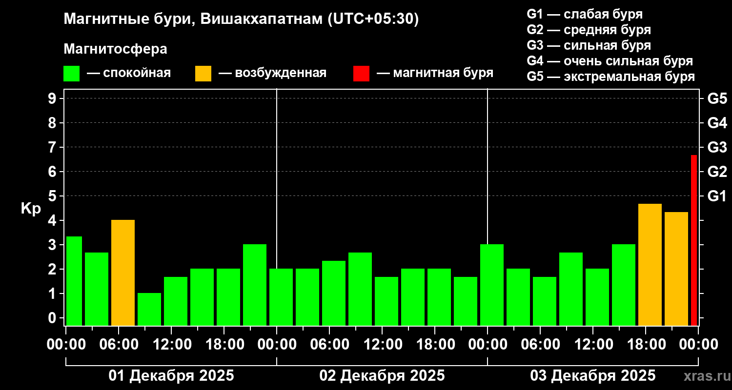 Магнитные бури в Вишакхапатнаме — 3 декабря 2025 года