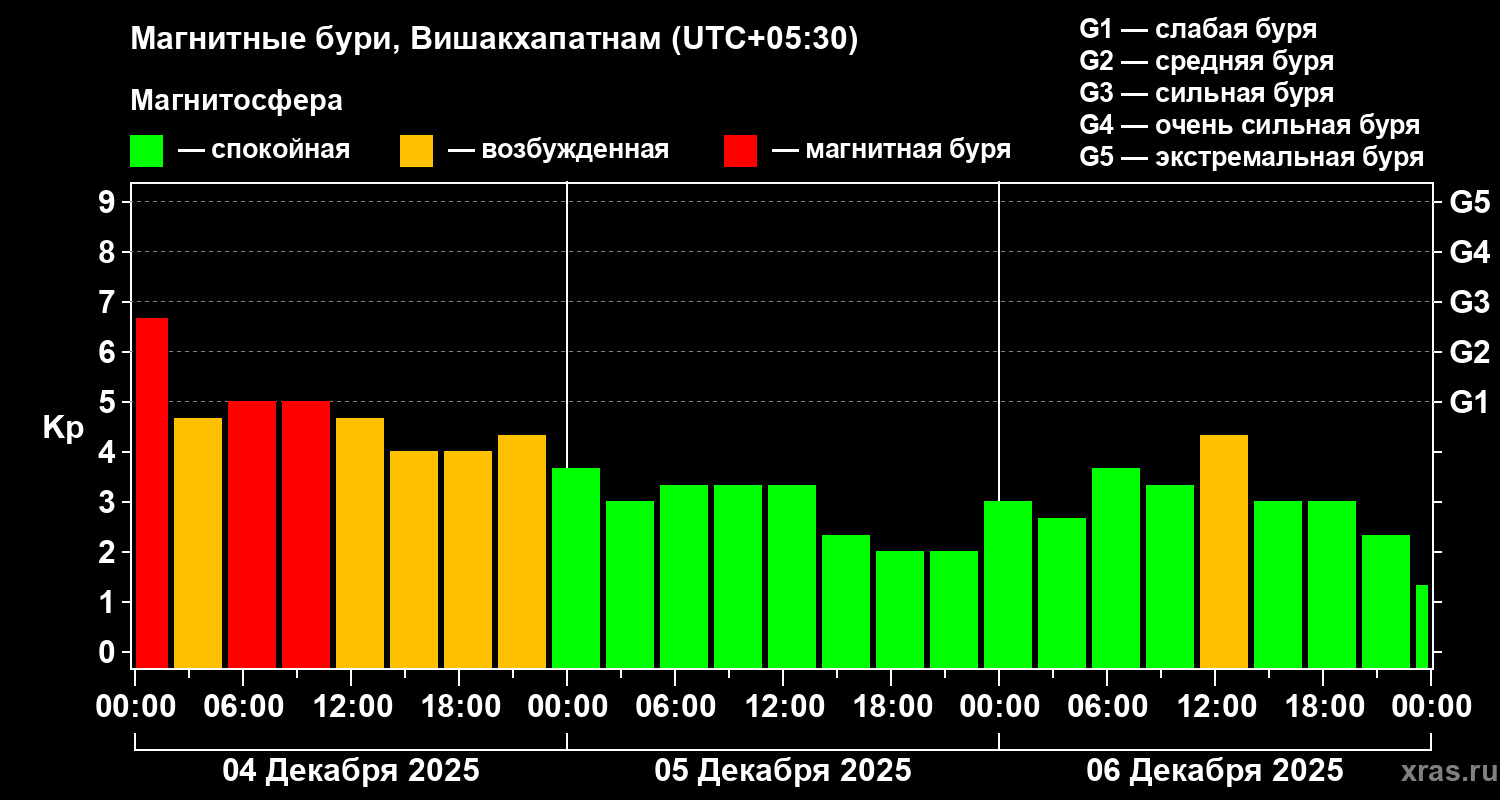 Магнитные бури в Вишакхапатнаме — 6 декабря 2025 года