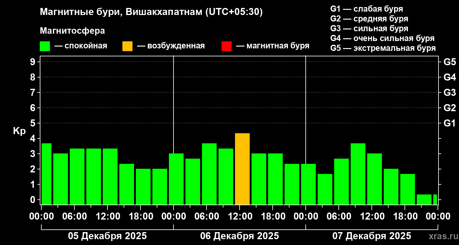 Магнитные бури в Вишакхапатнаме — 7 декабря 2025 года