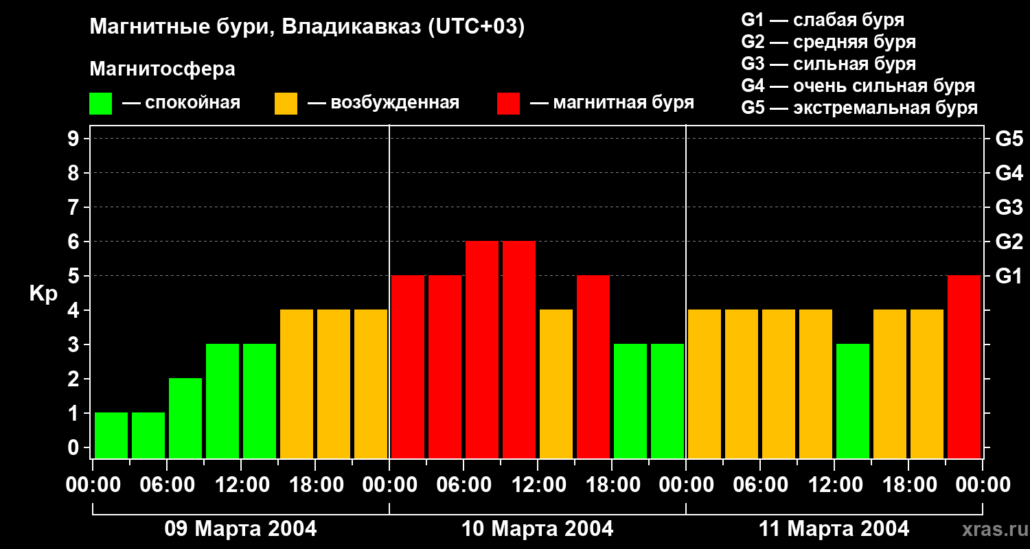 Магнитные бури во Владикавказе 11 марта 2004 года