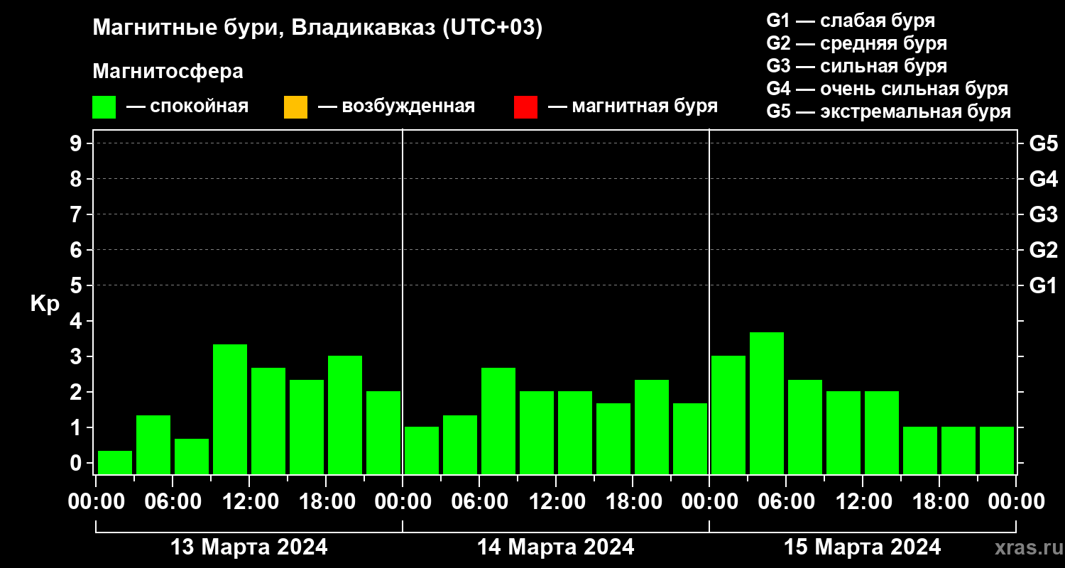 Магнитные бури во Владикавказе 15 марта 2024 года