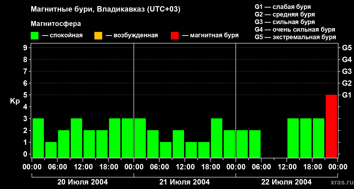 Магнитные бури во Владикавказе 22 июля 2004 года