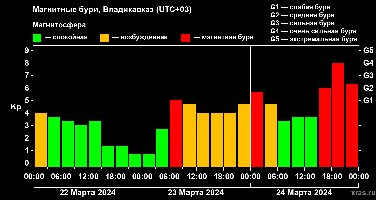 Магнитные бури во Владикавказе — 24 марта 2024 года