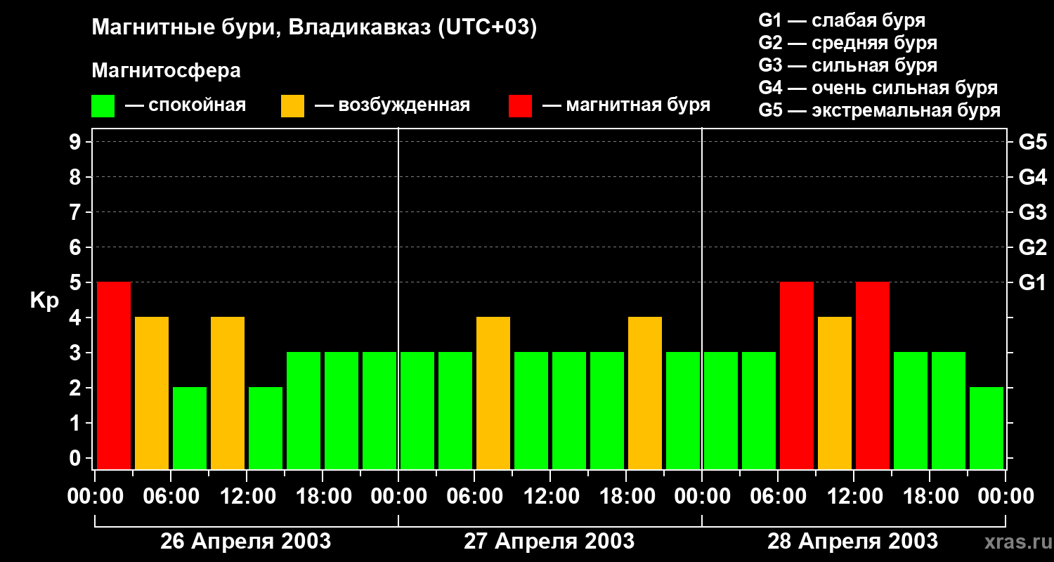 Магнитные бури во Владикавказе 28 апреля 2003 года