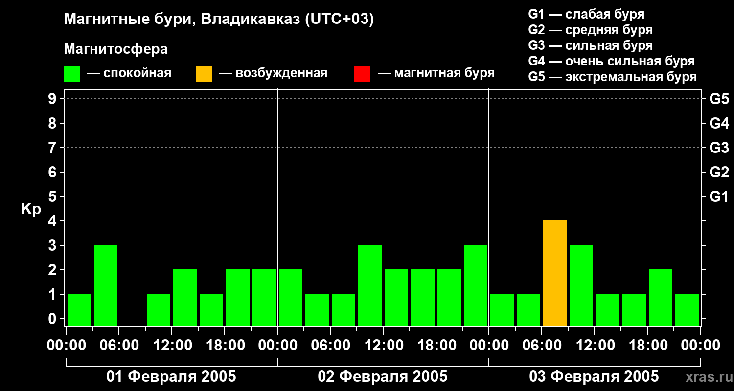 Магнитные бури во Владикавказе 3 февраля 2005 года