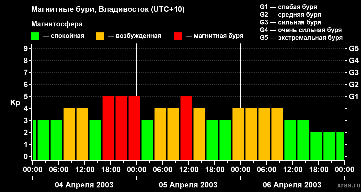 Магнитные бури во Владивостоке — 6 апреля 2003 года