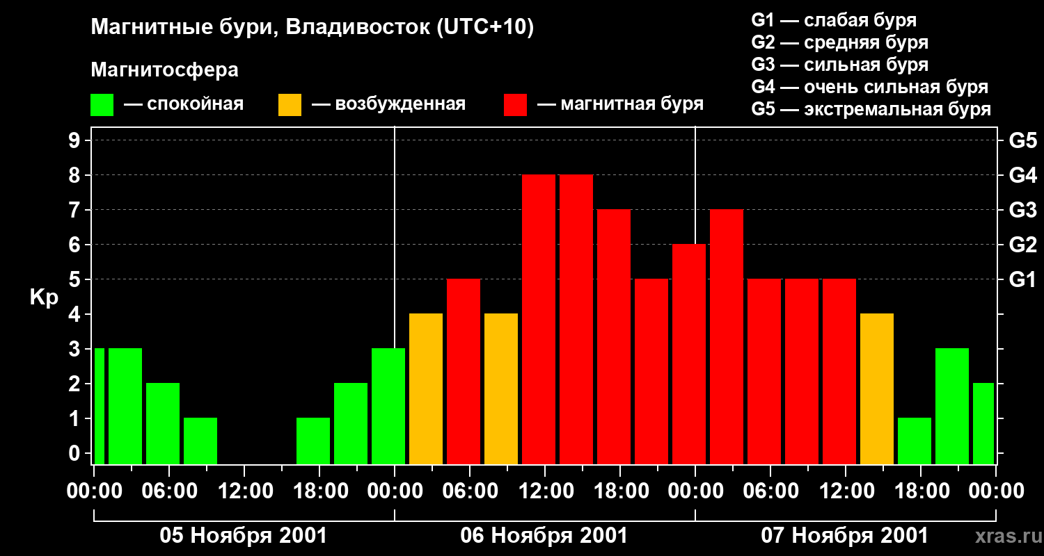 Магнитные бури во Владивостоке — 7 ноября 2001 года