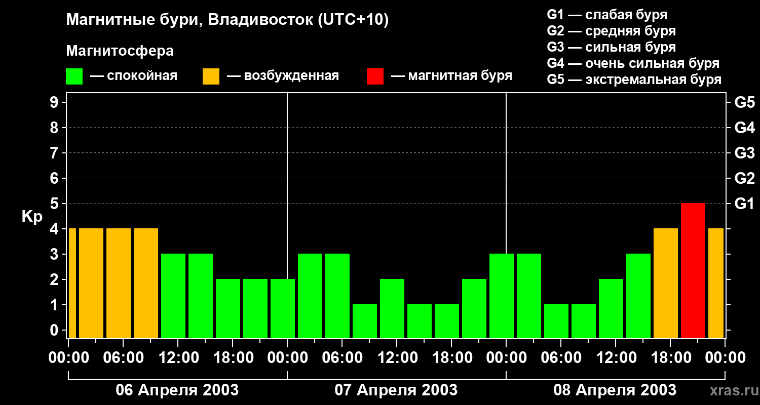 Магнитные бури во Владивостоке — 8 апреля 2003 года