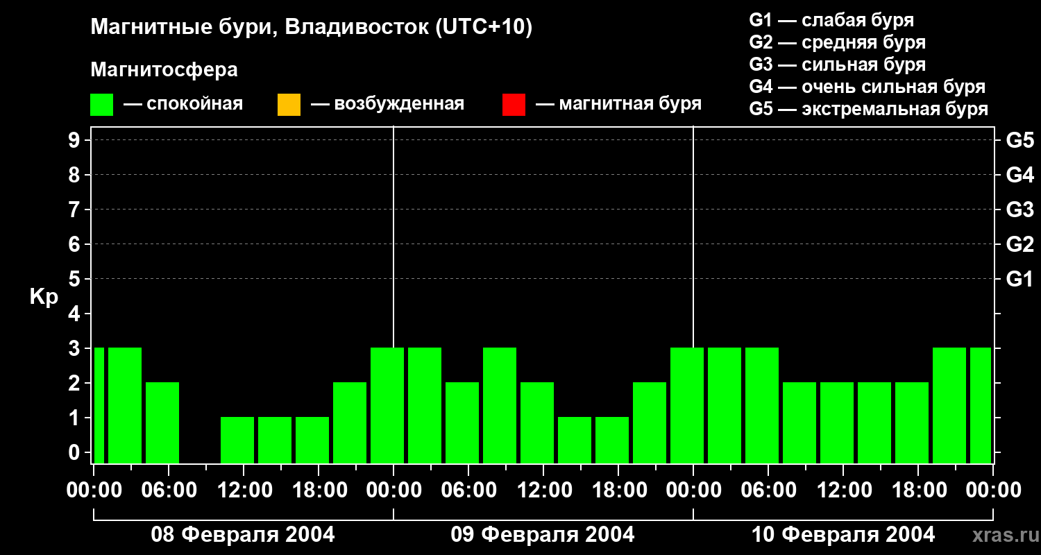 Магнитные бури во Владивостоке — 10 февраля 2004 года
