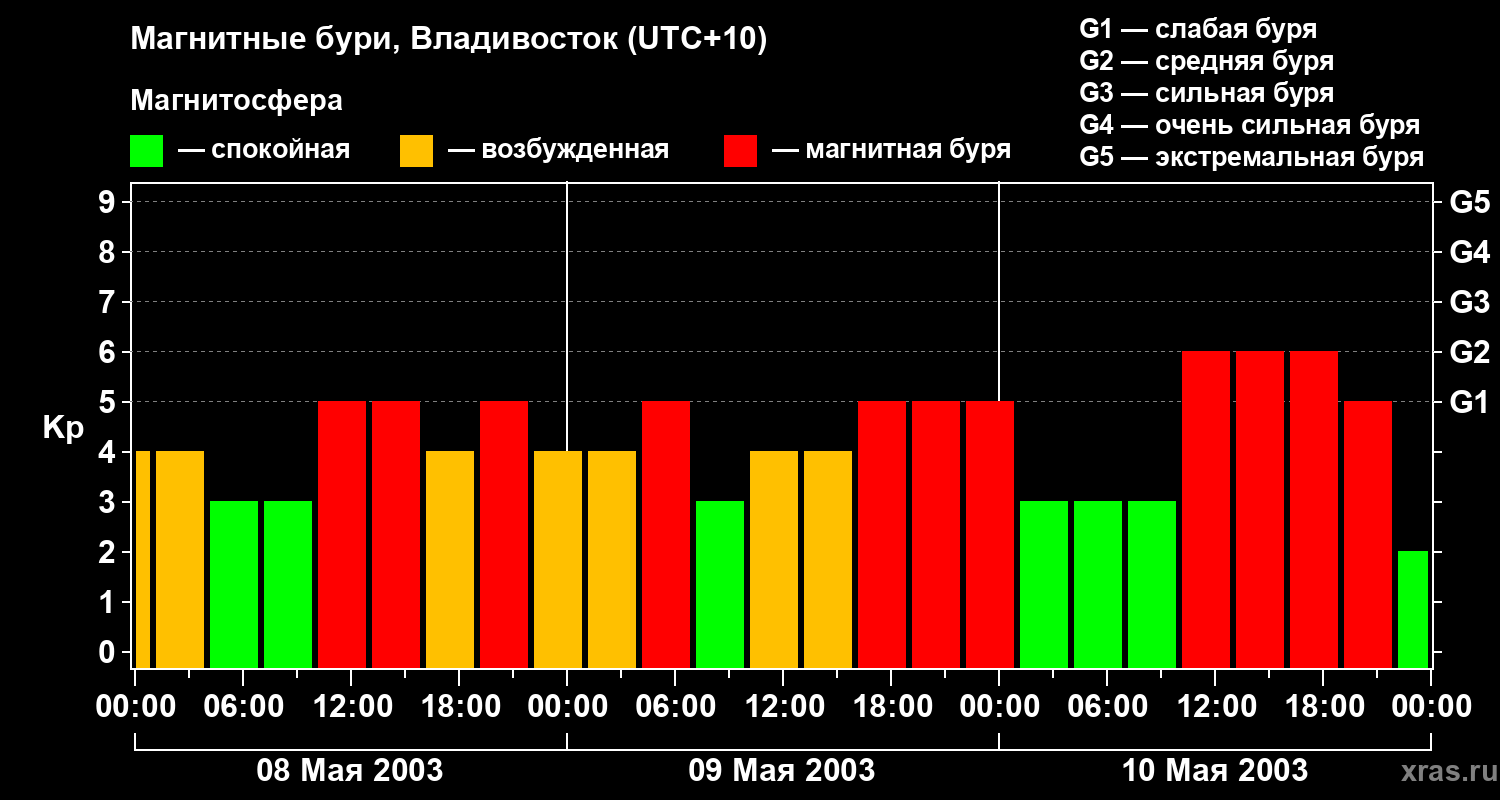Магнитные бури во Владивостоке — 10 мая 2003 года