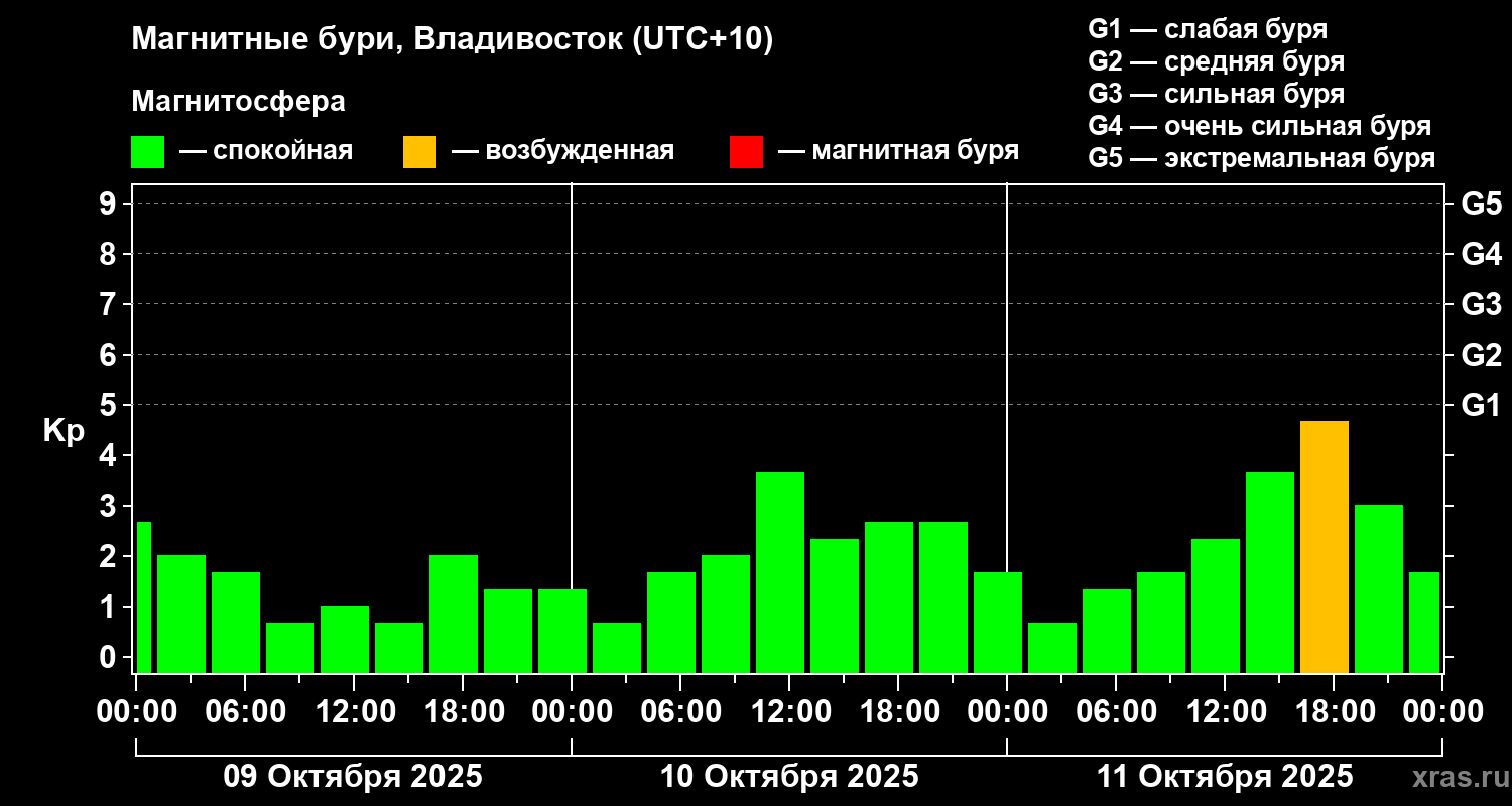 Магнитные бури во Владивостоке 11 октября 2025 года